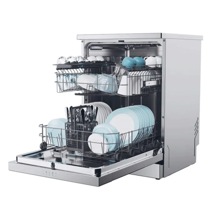 Le départ différé vous permet de programmer le cycle au moment le plus pratique, tandis que l’option demi-charge optimise l’utilisation de l’eau et de l’électricité lorsque la machine n’est pas pleine. Son design silver moderne s’intègre harmonieusement dans toutes les cuisines.