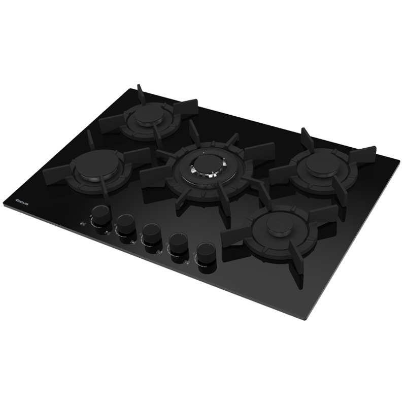 Plaque de Cuisson Encastrable – 5 Feux Gaz | Triple Couronne | Noir | 75 cm